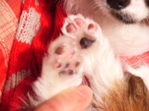 拭き拭き。足の先・裏の毛をチョキチョキ。